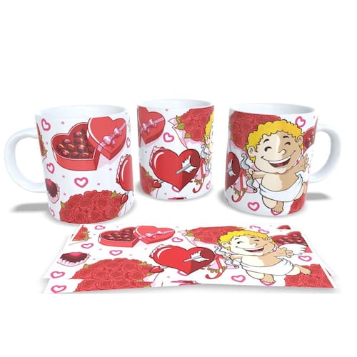 aneca personalizada de porcelana de alto brilho, com interior e alça branca com linda Estampa da Coleção Dia dos Namorados.