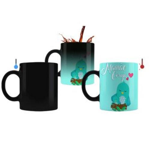 Caneca mágica de porcelana termosensível com interior branco, com estampa do dia das Mães.