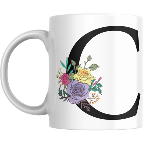 Caneca personalizada de porcelana de alto brilho, com interior e alça branca com linda Estampa Alfabeto Black.