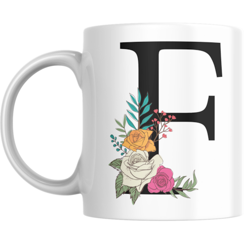 Caneca personalizada de porcelana de alto brilho, com interior e alça branca com linda Estampa Alfabeto Black.