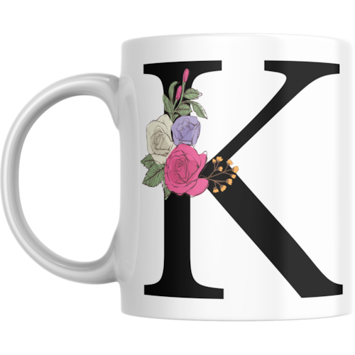 Caneca personalizada de porcelana de alto brilho, com interior e alça branca com linda Estampa Alfabeto Black.