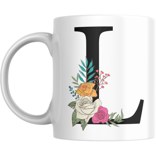Caneca personalizada de porcelana de alto brilho, com interior e alça branca com linda Estampa Alfabeto Black.