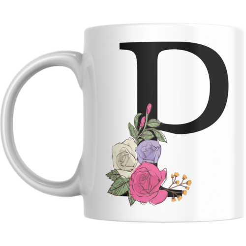 Caneca personalizada de porcelana de alto brilho, com interior e alça branca com linda Estampa Alfabeto Black.