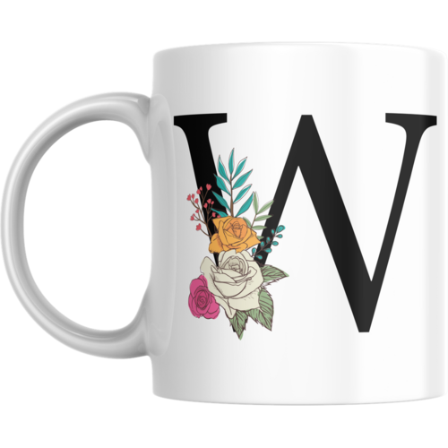 Caneca personalizada de porcelana de alto brilho, com interior e alça branca com linda Estampa Alfabeto Black.