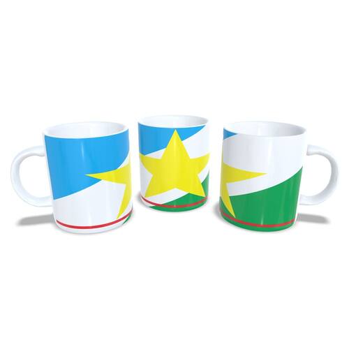 Caneca personalizada de porcelana de alto brilho, com interior e alça Branca Coleção Bandeiras dos Estados do Brasil.