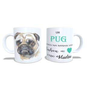 Caneca personalizada de porcelana de alto brilho, com interior e Alça branca Coleção Cães de Raças.