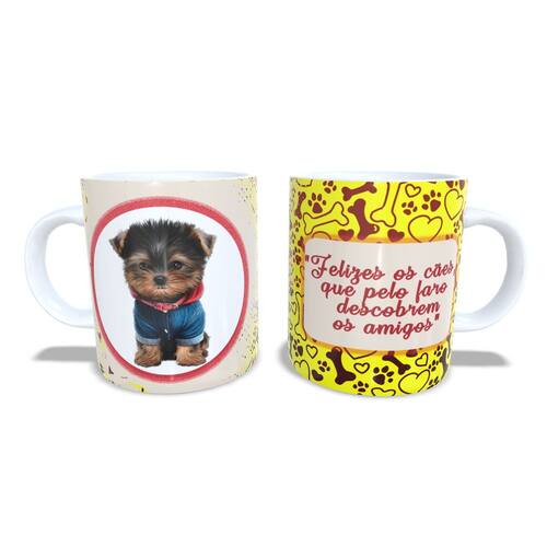 Caneca personalizada de porcelana de alto brilho, com interior e Alça branca Coleção Cães e Gatos.