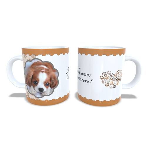 Caneca personalizada de porcelana de alto brilho, com interior e Alça branca Coleção Cães e Gatos.