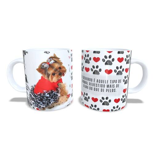 Caneca personalizada de porcelana de alto brilho, com interior e Alça branca Coleção Cães e Gatos.