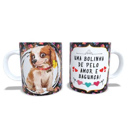 Caneca personalizada de porcelana de alto brilho, com interior e Alça branca Coleção Cães e Gatos.