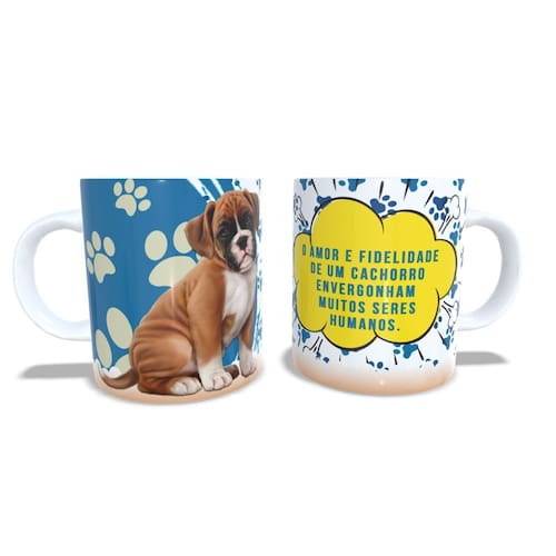 Caneca personalizada de porcelana de alto brilho, com interior e Alça branca Coleção Cães e Gatos.