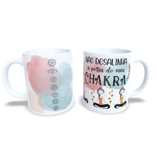 Caneca personalizada de porcelana de alto brilho, com interior e Alça branca Coleção Chakra desalinhado.