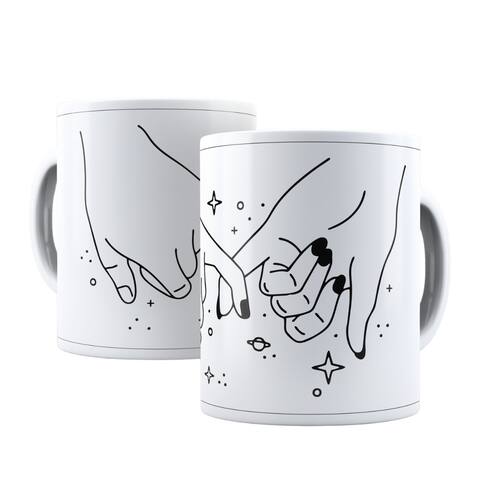 aneca personalizada de porcelana de alto brilho, com interior e alça Branca Coleção Amizades.