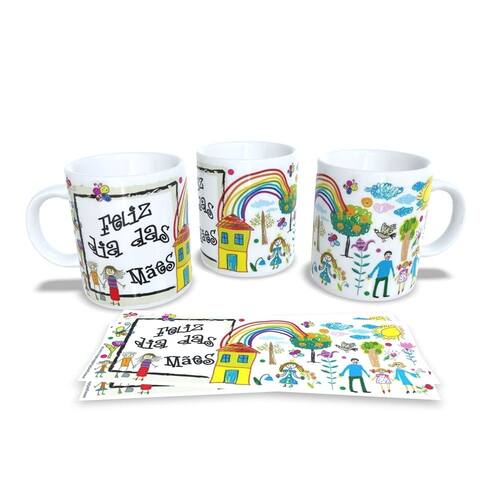 Caneca personalizada de porcelana de alto brilho, com interior e alça branca com linda Estampa da Coleção dia das Mães.