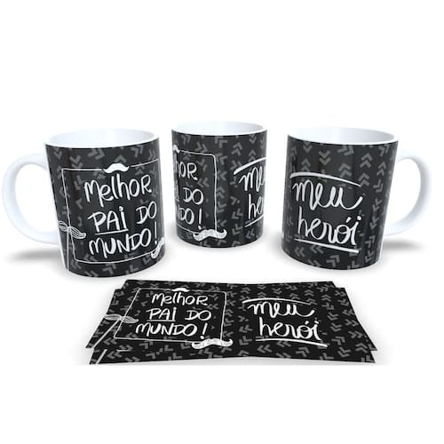 Caneca personalizada de porcelana de alto brilho, com interior e Alça branca Coleção dia dos Pais.