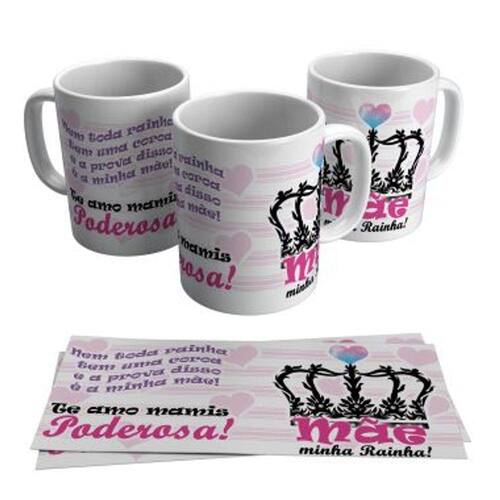 Caneca personalizada de porcelana de alto brilho, com interior e alça branca com linda Estampa do dia das Mães.