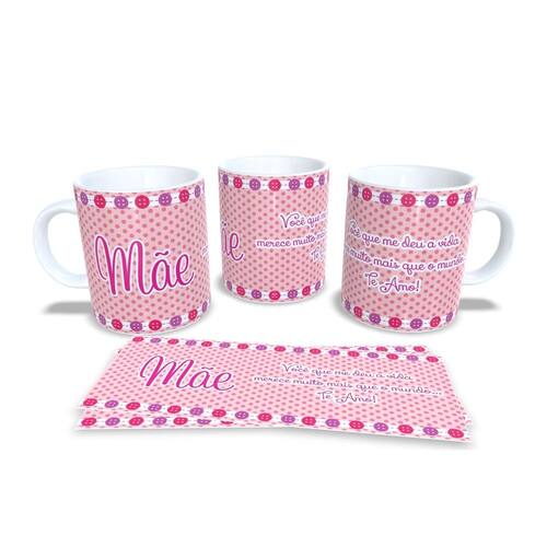 Caneca personalizada de porcelana de alto brilho, com interior e alça branca com linda Estampa da Coleção dia das Mães.