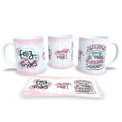 Caneca personalizada de porcelana de alto brilho, com interior e Alça branca Coleção Dia das Mães.