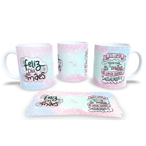Caneca personalizada de porcelana de alto brilho, com interior e Alça branca Coleção Dia das Mães.