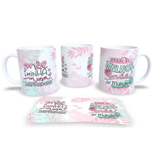 Caneca personalizada de porcelana de alto brilho, com interior e Alça branca Coleção Dia das Mães.
