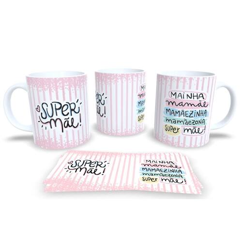 Caneca personalizada de porcelana de alto brilho, com interior e Alça branca Coleção Dia das Mães.
