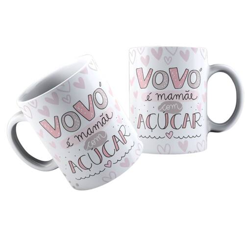 Caneca personalizada de porcelana de alto brilho, com interior e Alça branca Coleção Dia dos Avós.