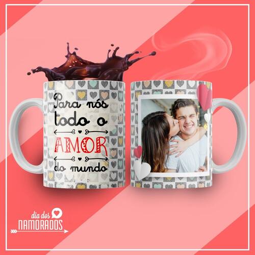 Caneca personalizada de porcelana de alto brilho, com interior e alça branca com linda Estampa da Coleção Dia dos Namorados.