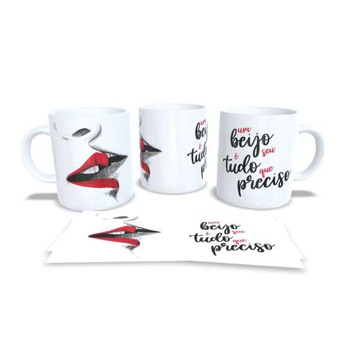 Caneca personalizada de porcelana de alto brilho, com interior e alça branca com linda Estampa da Coleção Dia dos Namorados.