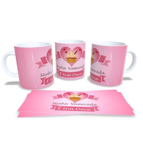 aneca personalizada de porcelana de alto brilho, com interior e alça branca com linda Estampa da Coleção Dia dos Namorados.