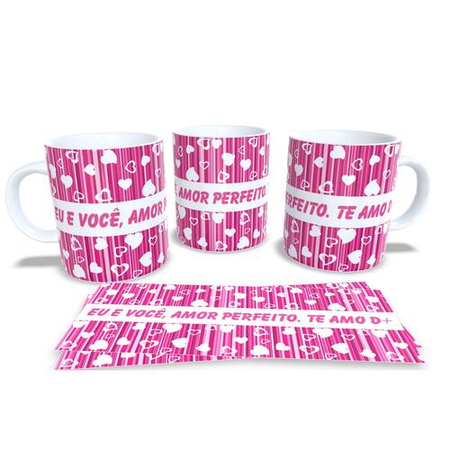 aneca personalizada de porcelana de alto brilho, com interior e alça branca com linda Estampa da Coleção Dia dos Namorados.