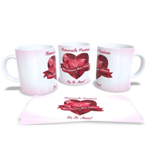aneca personalizada de porcelana de alto brilho, com interior e alça branca com linda Estampa da Coleção Dia dos Namorados.