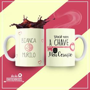 Caneca personalizada de porcelana de alto brilho, com interior e Alça branca Coleção Dia dos Namorados.