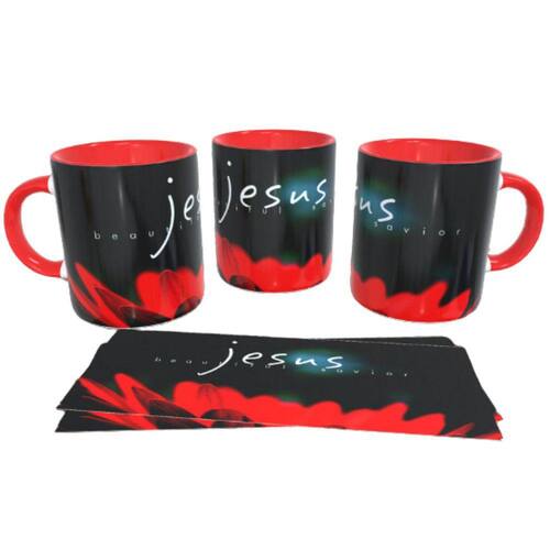 Caneca personalizada de porcelana de alto brilho, com interior e alça Vermelha com linda Estampa Tema Evangelico.