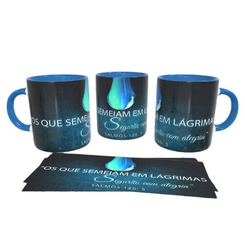 Caneca personalizada de porcelana de alto brilho, com interior e alça Azul com linda Estampa Tema Evangelico.
