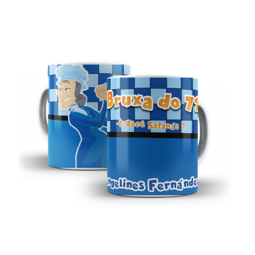 Caneca personalizada de porcelana de alto brilho, com interior e Alça branca Coleção Turma do Chaves.