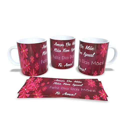 Caneca personalizada de porcelana de alto brilho, com interior e alça branca com linda Estampa da Coleção dia das Mães.