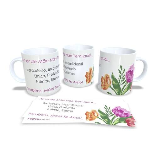 Caneca personalizada de porcelana de alto brilho, com interior e alça branca com linda Estampa da Coleção dia das Mães.