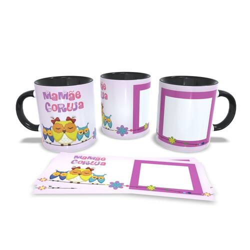 Caneca personalizada de porcelana de alto brilho, com interior e alça Preta com linda Estampa da Coleção dia das Mães.