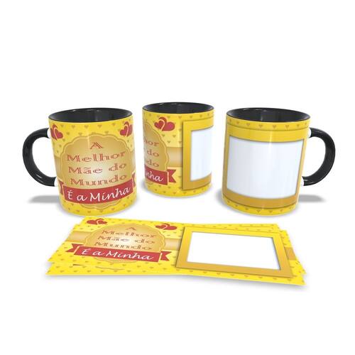 Caneca personalizada de porcelana de alto brilho, com interior e alça Preta com linda Estampa da Coleção dia das Mães.