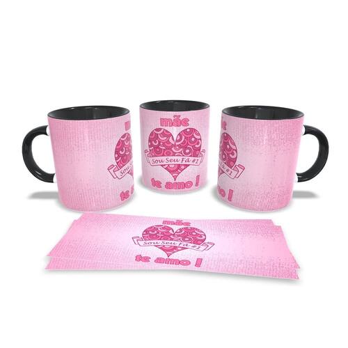 Caneca personalizada de porcelana de alto brilho, com interior e alça Preta com linda Estampa da Coleção dia das Mães.