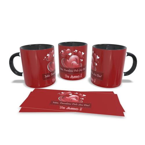 Caneca personalizada de porcelana de alto brilho, com interior e alça Preta com linda Estampa da Coleção dia das Mães.