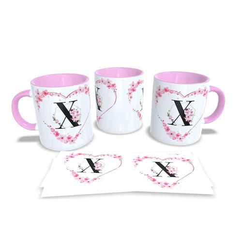 Canecas Rosa Coleção Alfabeto Gramur Com Coração A/Z Letra A