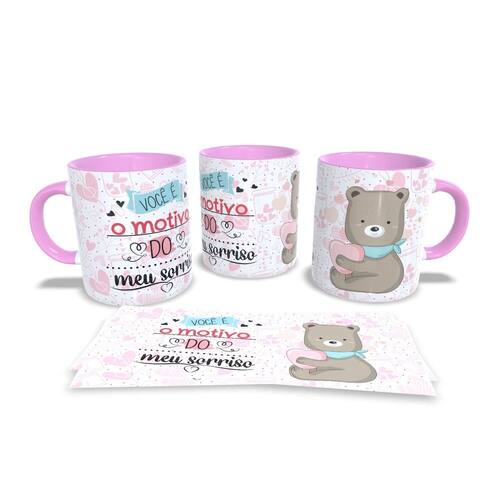 Caneca personalizada de porcelana de alto brilho, com interior e alça Rosa com linda Estampa da Coleção Dia dos Namorados.