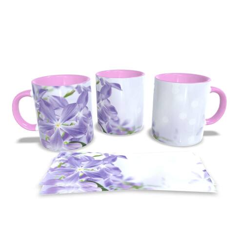Caneca personalizada de porcelana de alto brilho, com interior e alça Rosa com linda Estampa da Coleção Flores.