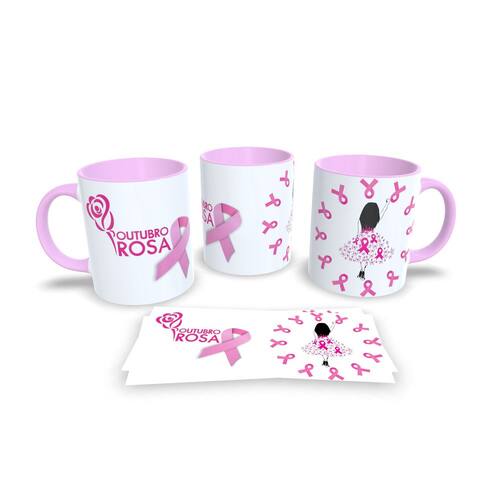 Canecas Rosa de Porcelana Personalizadas Outubro Rosa
