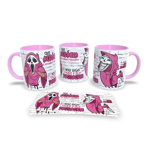 Caneca personalizada de porcelana de alto brilho, com interior e alça Rosa com a Estampa Amostradinho.