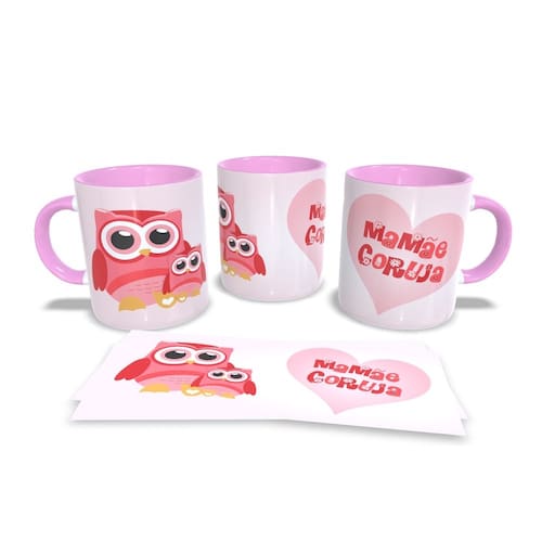 Caneca personalizada de porcelana de alto brilho, com interior e alça Rosa com linda Estampa da Coleção dia das Mães.