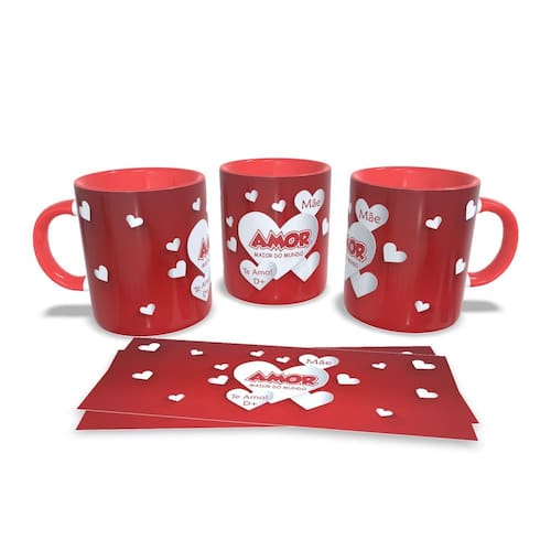 Caneca personalizada de porcelana de alto brilho, com interior e alça Vermelho com linda Estampa da Coleção dia das Mães.