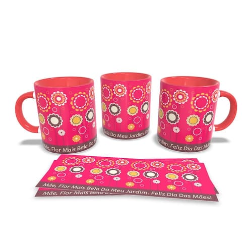 Caneca personalizada de porcelana de alto brilho, com interior e alça Vermelho com linda Estampa da Coleção dia das Mães.