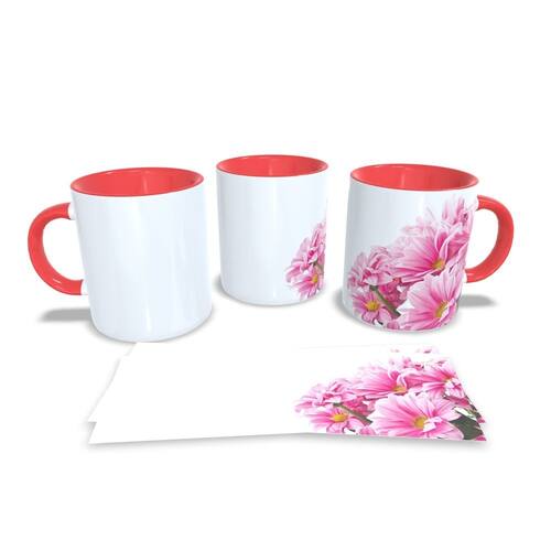 Caneca personalizada de porcelana de alto brilho, com interior e alça Vermelha com linda Estampa da Coleção Flores.